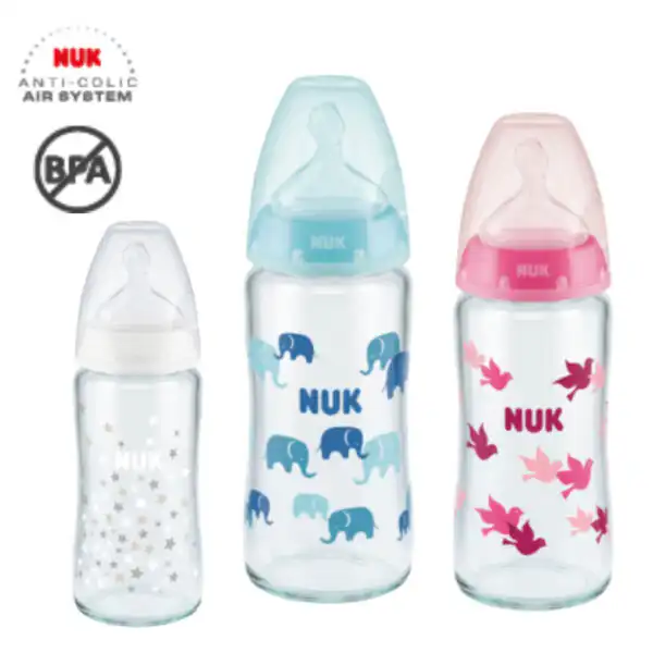 NUK Perfect Match Premium Glass Baby Bottle with Anti-Colic Teat and Temperature Control – 120ml or 230ml