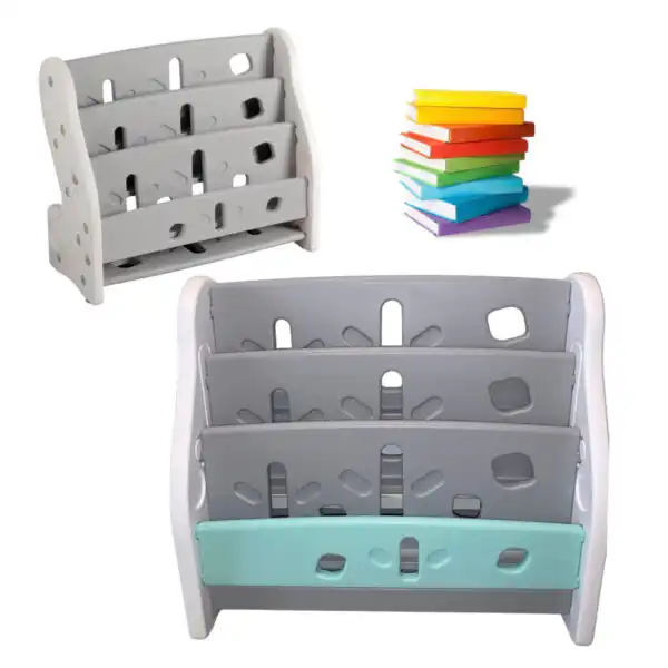 Kids Book Display Shelf – Montessori-Inspired Bookshelf – Grey/Mint