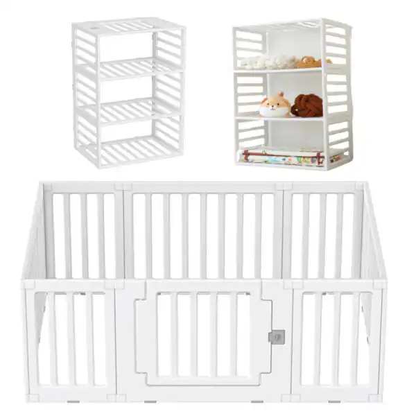 2 in 1 Convertible Baby Playpen 10 pieces & Storage Rack