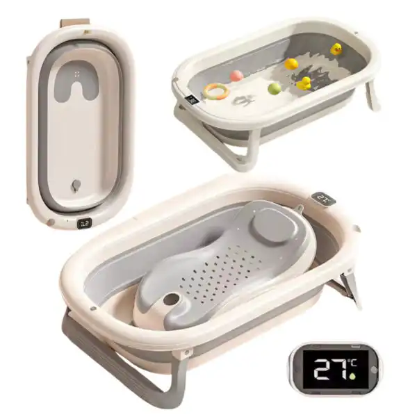 Preorder – Foldable Baby Bath with Digital Thermometer & Newborn Support Rack – GREY