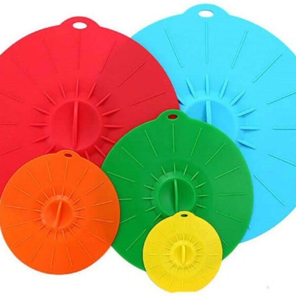 Set of 5 Reusable Silicone Lids Covers for Cups Bowls Pots