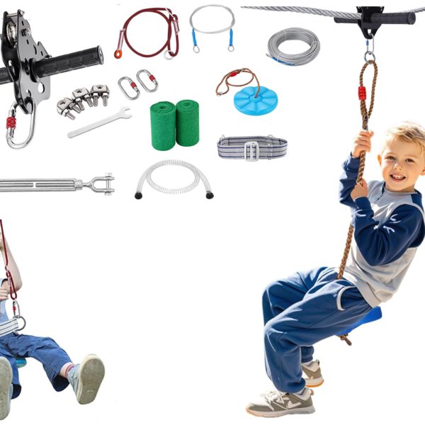 Zipline Kit for 100ft Outdoor Zipline Kit with Seat & Harness