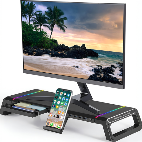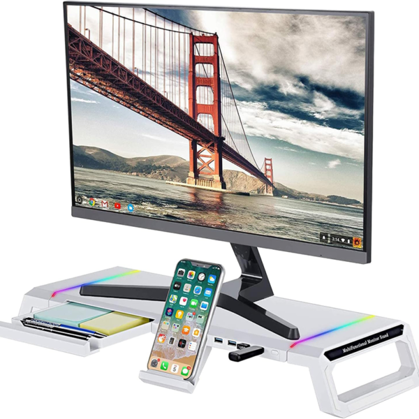 Monitor Stand Riser – RGB Monitor Stand Riser with USB Hub & Drawer