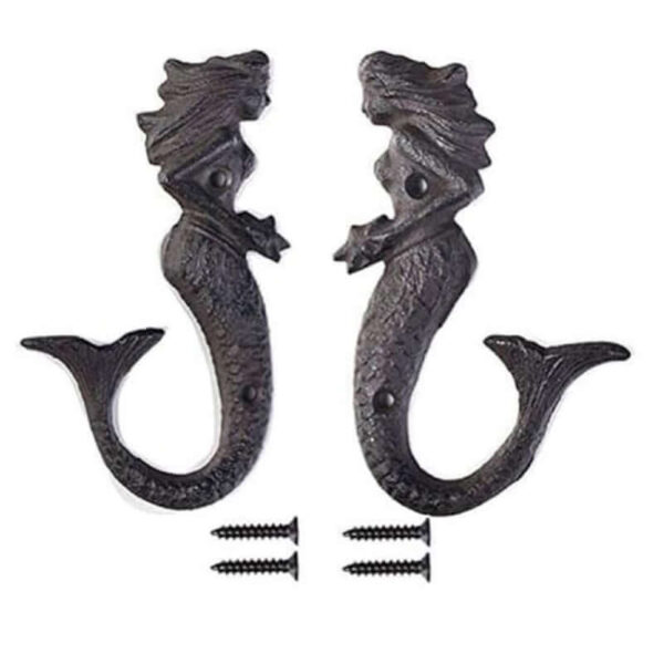 Cast Iron Mermaid Hook – Rustic – Set Of 2