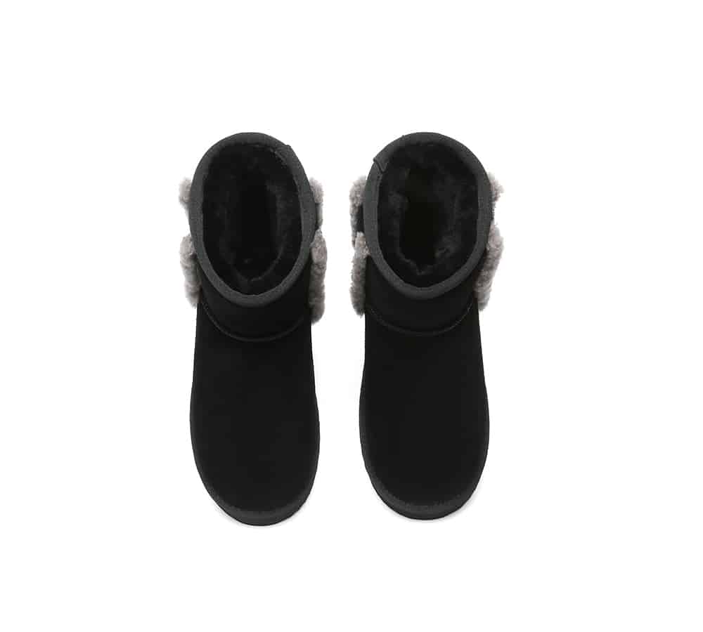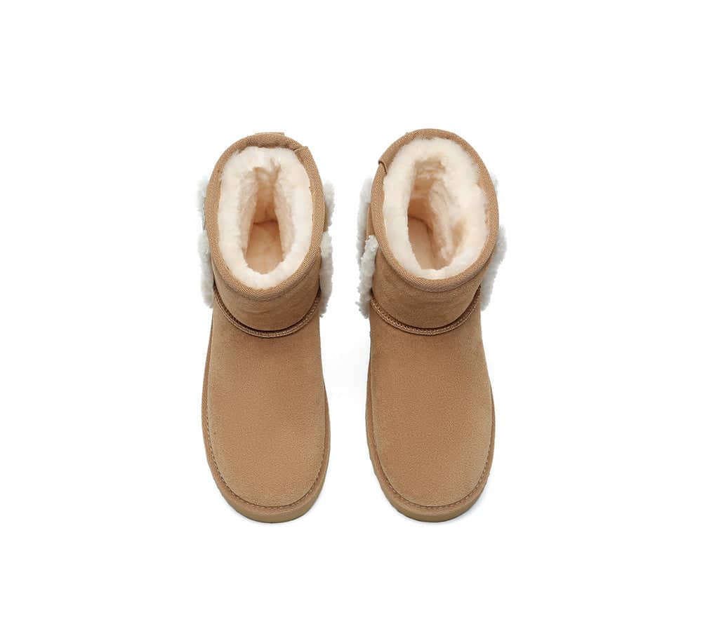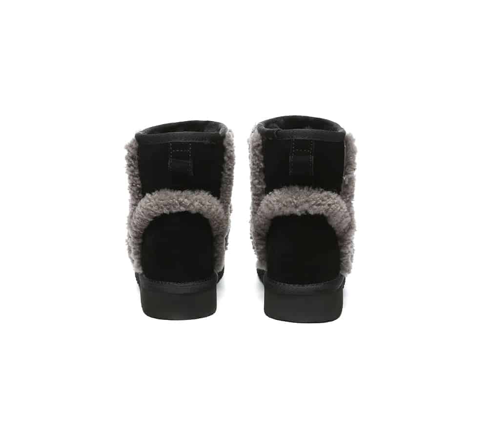 Elevate your casual wardrobe with the Australian Shepherd Darby Mini Ankle Boots, crafted with luxurious sheepskin for ultra warmth and shearling-lined accents for elevated style. These modern boots feature a water-resistant suede exterior and lightweight EVA sole, blending fashion with function. Available in versatile chestnut and black, they’re perfect for pairing with everyday outfits while keeping you cozy in autumn and winter.