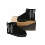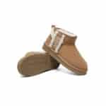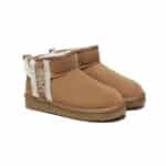 Look no further than the Australian Shepherd Darby Ultra Mini Ankle Boots for a timeless and elevated everyday look. Perfect for year-round wear, these boots are crafted with luxurious sheepskin for ultra warmth and all-day comfort. Available in chestnut and black, they feature shearling-lined accents on each side, adding extra style to the classic UGG silhouette. The water-resistant coating and lightweight EVA sole make them as practical as they are fashionable.