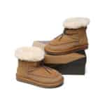 Step into effortless style with the Australian Shepherd Stormy Mini Woven Ankle Boots, combining luxurious sheepskin warmth with adjustable comfort. The adjustable front strap and plush wool collar create a customizable fit, while the water-resistant suede and lightweight TPR sole ensure durability for everyday wear. Perfect for pairing with jeans or casual outfits, these chestnut boots deliver both fashion and function for cooler days.
