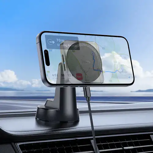 This phone holder features a powerful magnetic design that securely holds your phone in place, even on bumpy roads. The 15W fast charging capability ensures that your device stays powered up throughout your journey.