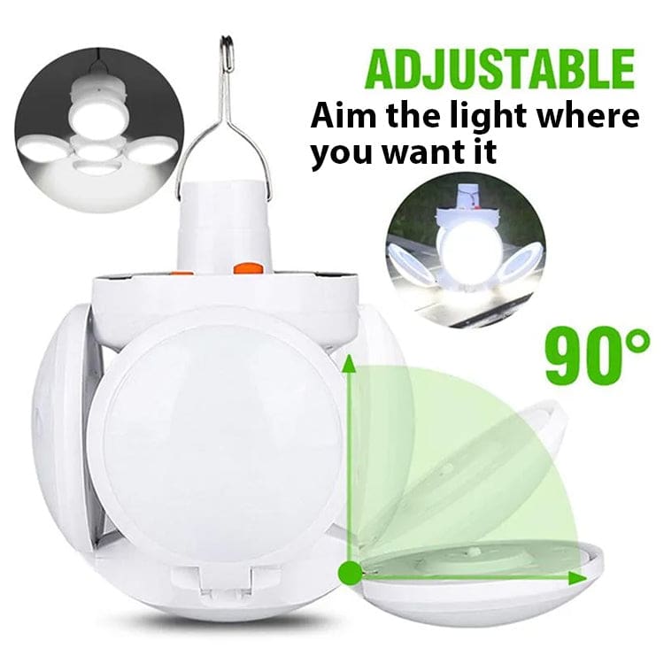 The built-in solar panel harnesses the power of the sun to keep your light charged, so you can rely on clean, renewable energy to brighten your campsite. Even on cloudy days, a USB charging port allows you to recharge the lamp using a power bank or other USB power source, ensuring you never get caught in the dark.