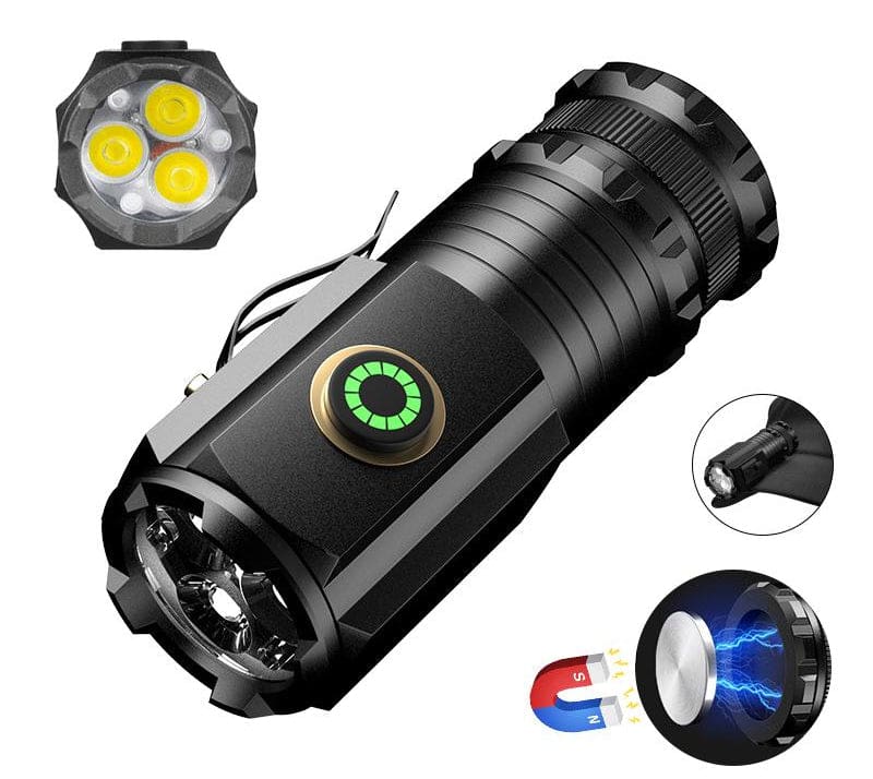 Compact in size, powerful in performance — the 3LED Mini Rechargeable Flashlight is your go-to torch for everyday carry, outdoor adventures, repairs, or emergency use. Crafted from rugged aluminum alloy and equipped with high-intensity P35 LED beads, this torch delivers exceptional brightness in a mini, pocket-sized design.