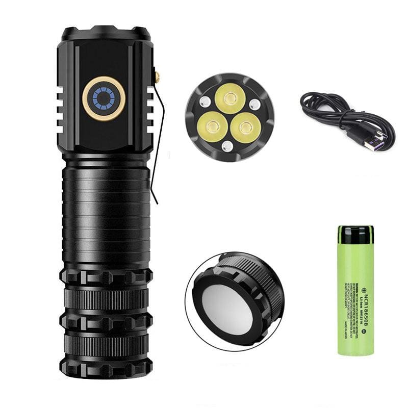 Ultra-Bright Output: Powered by three P35 strong light beads, this flashlight delivers up to 2000 lumens of intense brightness with an illumination distance of over 300 meters.