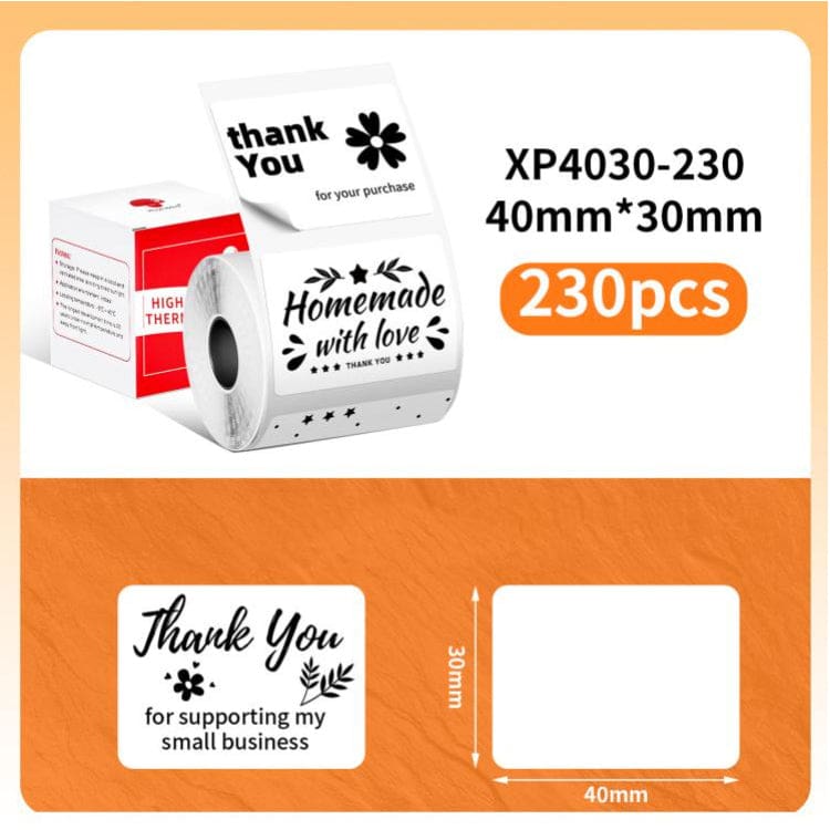 - 40x30mm Pre-Cut Labels, 230 labels (approx) per roll