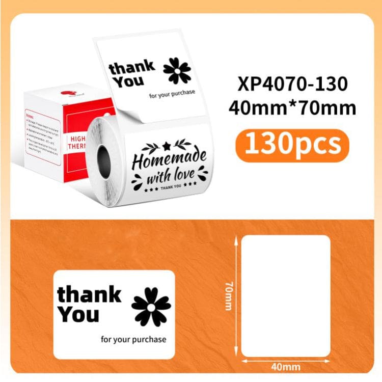 - 40x70mm Pre-Cut Labels, 130 labels (approx) per roll