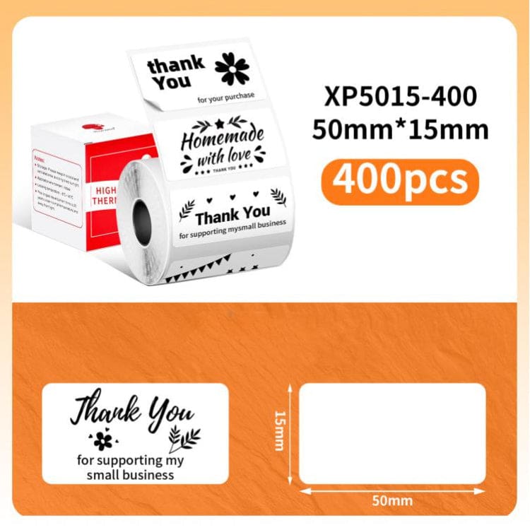 - 50x15mm Pre-Cut Labels, 400 labels (approx) per roll