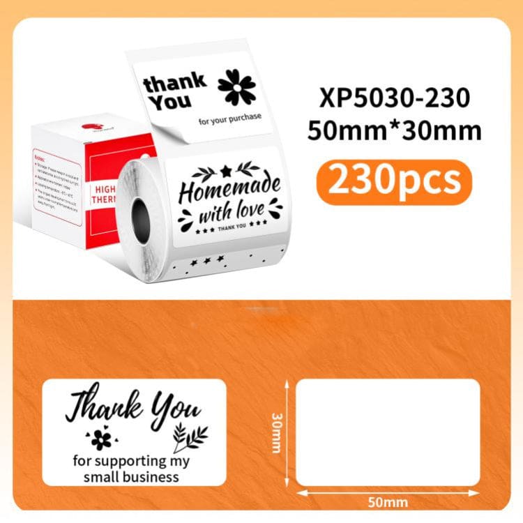 - 50x30mm Pre-Cut Labels, 230 labels (approx) per roll