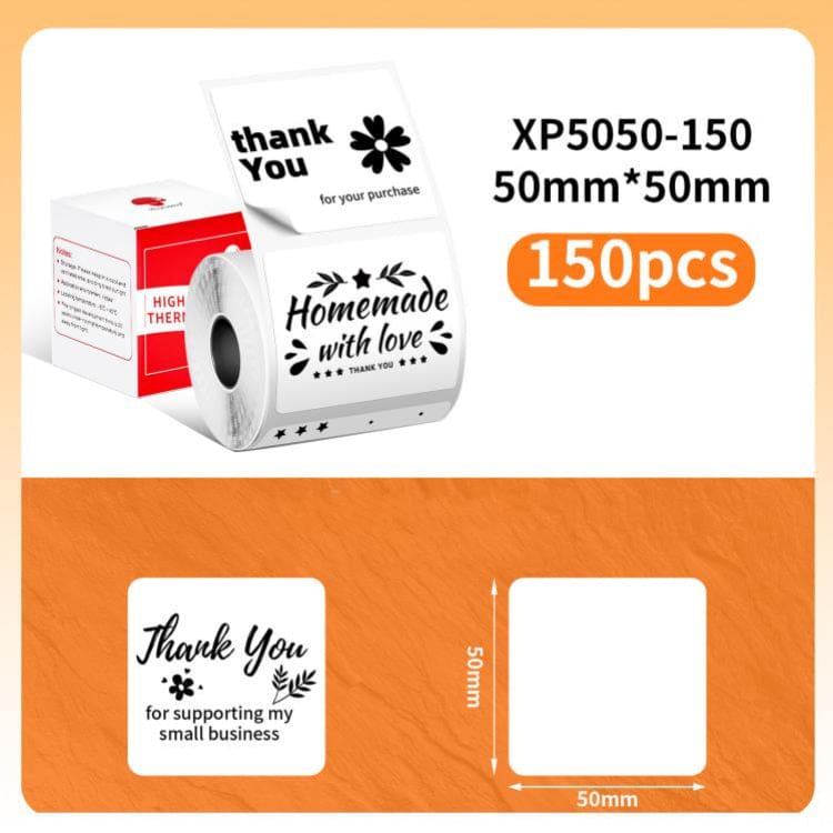 - 50x50mm Pre-Cut Labels, 150 labels (approx) per roll