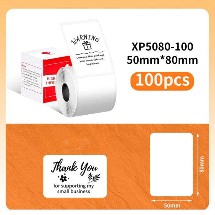 - 50x80mm Pre-Cut Labels, 100 labels (approx) per roll