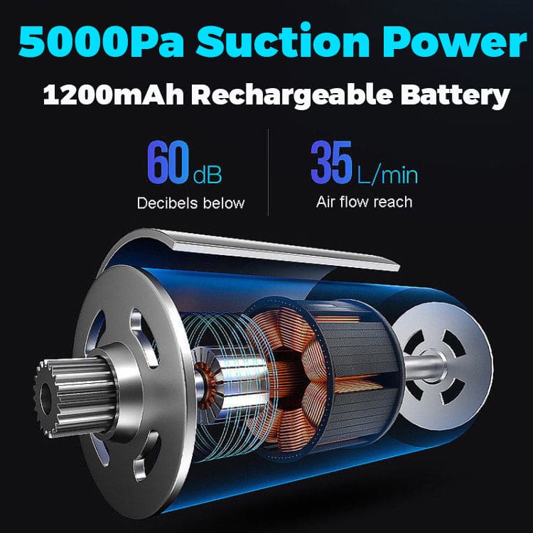 This mini marvel features a powerful motor generating a robust 5500Pa suction, effectively capturing fine particles and larger debris alike. The integrated washable HEPA filter ensures that captured dust and allergens are trapped, contributing to a cleaner and healthier environment. The mini vacuum operates on a 1200mA rechargeable lithium-ion battery, providing extended cleaning sessions without the hassle of cords.