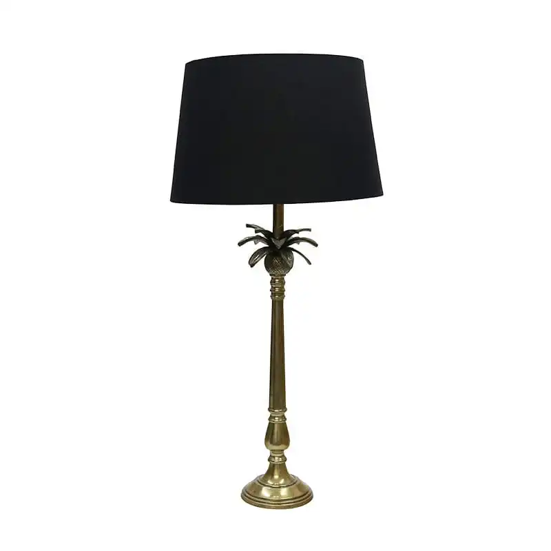 Light up any room with style with this beautiful aluminum palm table lamp. The antique brass and black finish adds a unique touch to any space, no matter the decor. With a linen shade and 85cm height, this lamp casts a warm glow that will last for years to come. Perfect for any space – a must have!