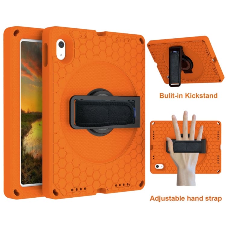 A rotating hand strap provides an easy grip and the pop-out stand allows tabletop viewing