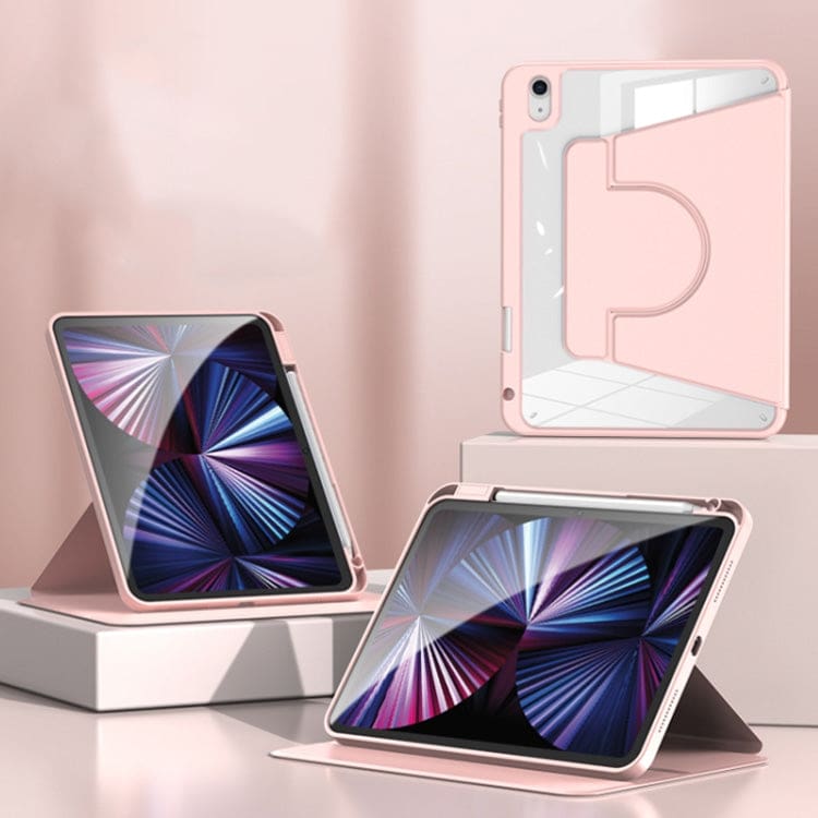 Protect your Apple iPad Mini 6 (2021) or Mini 7 (2024) with this versatile 2-in-1 Acrylic Cover. It features a magnetically attached flip cover that doubles as a rotating stand, while built-in corner airbags ensure enhanced protection against drops and knocks. Available in various colours.