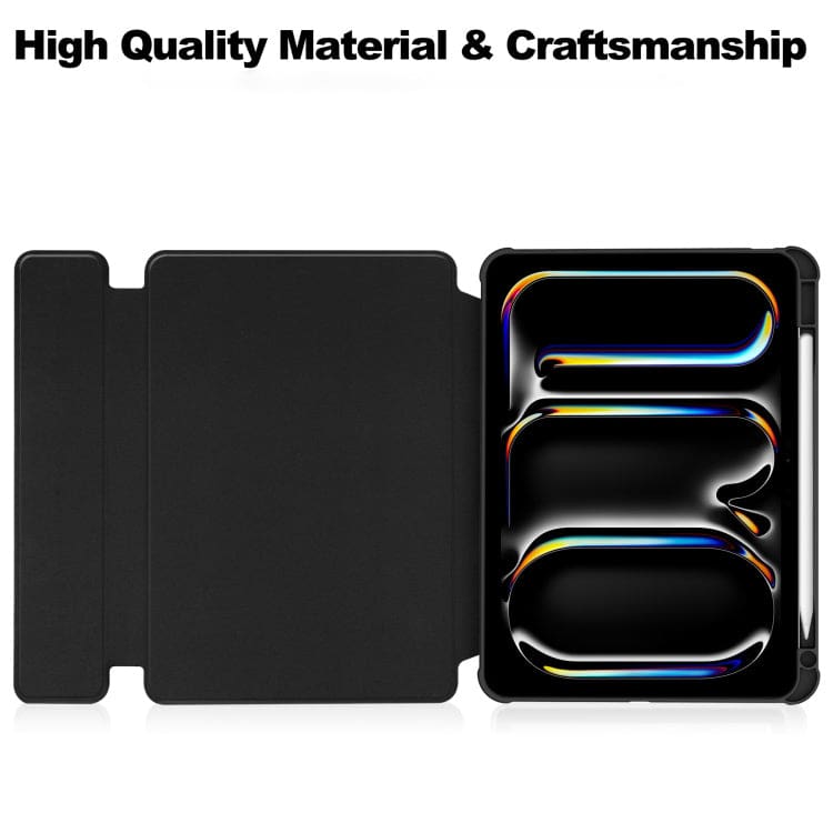 Designed specifically for the Apple iPad Pro 11 2024 model, this tri-fold flip cover features a built-in detachable Bluetooth keyboard for seamless typing and productivity on the go.