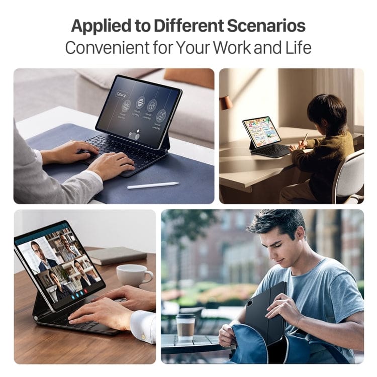 Transform your iPad into a mobile office with the Dux Ducis Magnetic Floating Keyboard Cover. This stylish case offers robust 360-degree protection and features a detachable Bluetooth keyboard with a precision touchpad, making it ideal for professionals and creators who need ergonomic versatility and portability on the go.