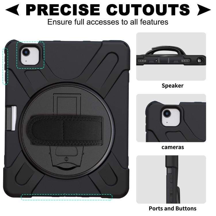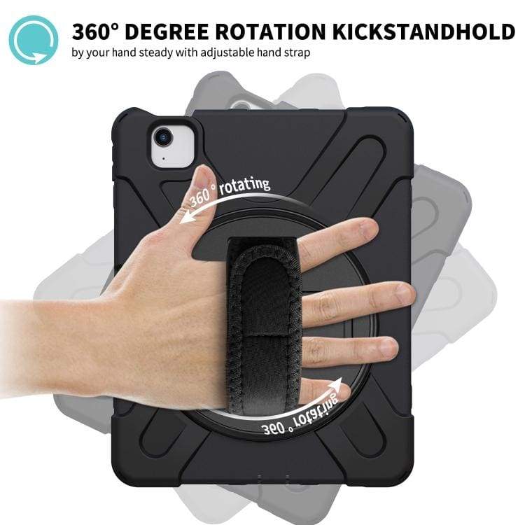 Protect your tablet with this heavy-duty, shockproof case designed for Apple iPad Pro 11 and iPad Air 10.9. Featuring a rotating stand, adjustable hand grip, and 360-degree drop protection, it ensures safety against drops and bumps while providing ease of use on the go.