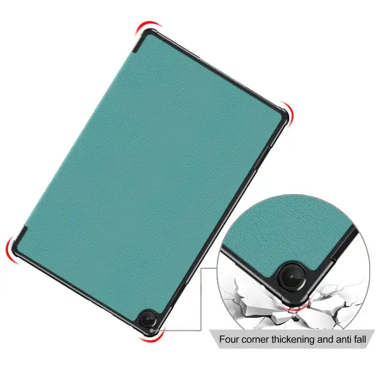 The cover features a tri-fold leather texture design, which not only adds to its stylish appearance but also allows it to double as a phone stand for easy viewing in landscape mode. The silicone bumper frame ensures a precise fit for your tablet while also keeping it slim and providing easy access to all buttons and ports.