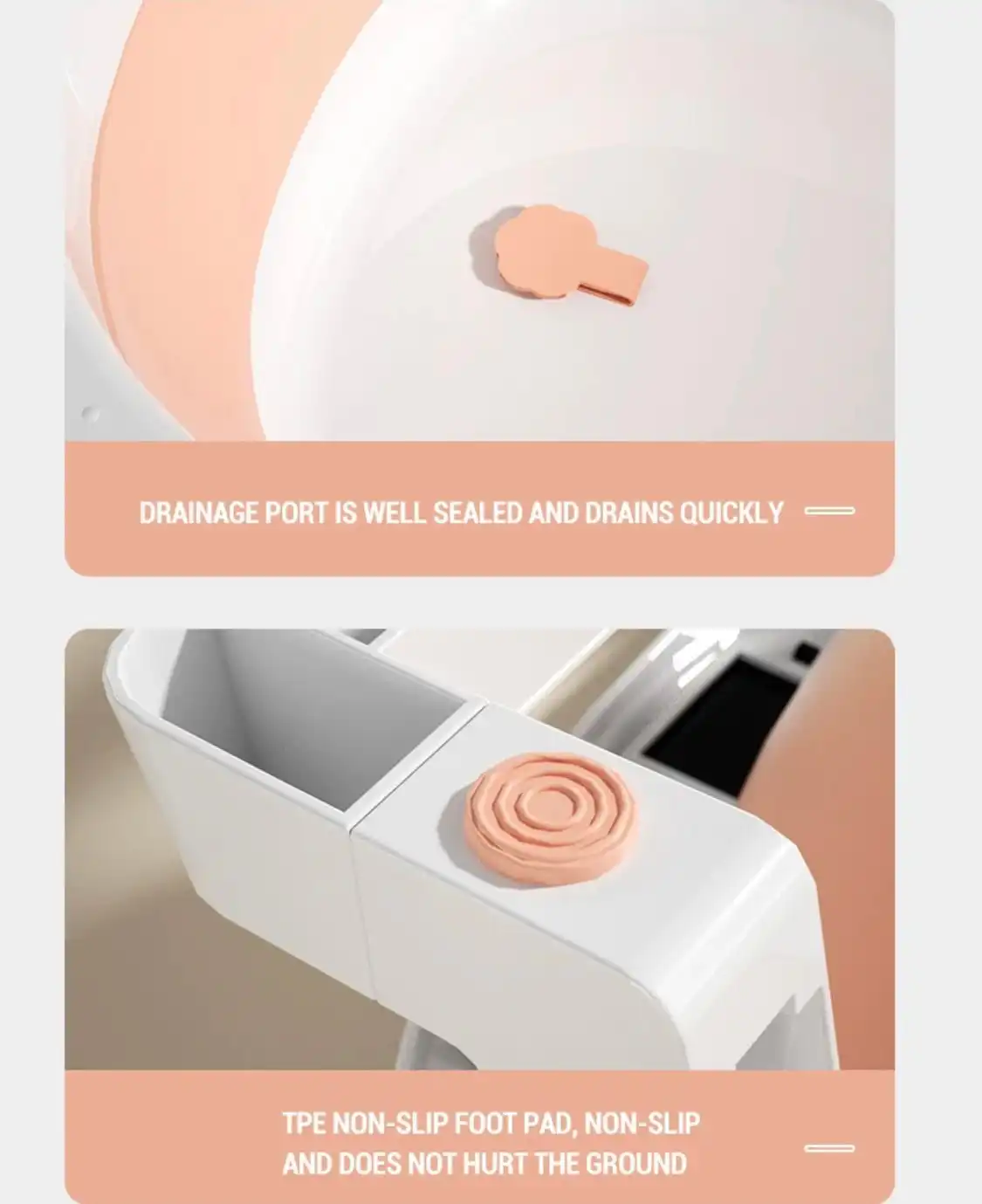 • Grows with Your Child: Easily adjustable, this tub accommodates growing needs from newborns to toddlers, ensuring long-term use. • Ergonomic design: The integrated seat stool adopts a micro slope design.Round and wide edged comfortable to use without fear of hand slipping.