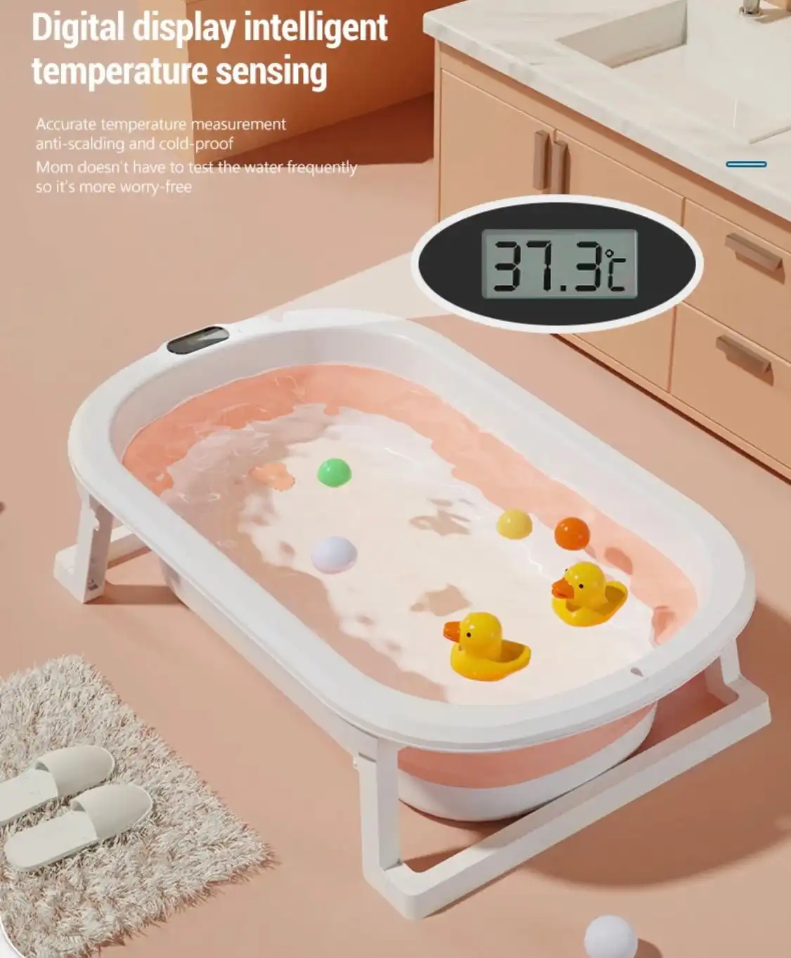 • Temperature Display: An electronic readout gives you real-time water temperature, ensuring your child’s bath is never too hot or cold.