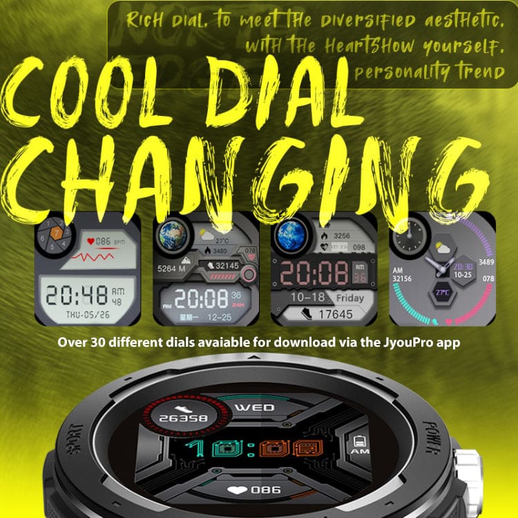 The smartwatch connects to the JYouPro fitness app, which offers fitness monitoring and real-time heart rate and blood oxygen readings. It has over 30 watch faces available for download through the app, and you can receive notifications from all of your favourite apps, such as incoming calls, messages, and social media alerts.