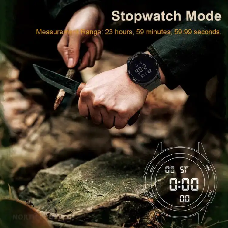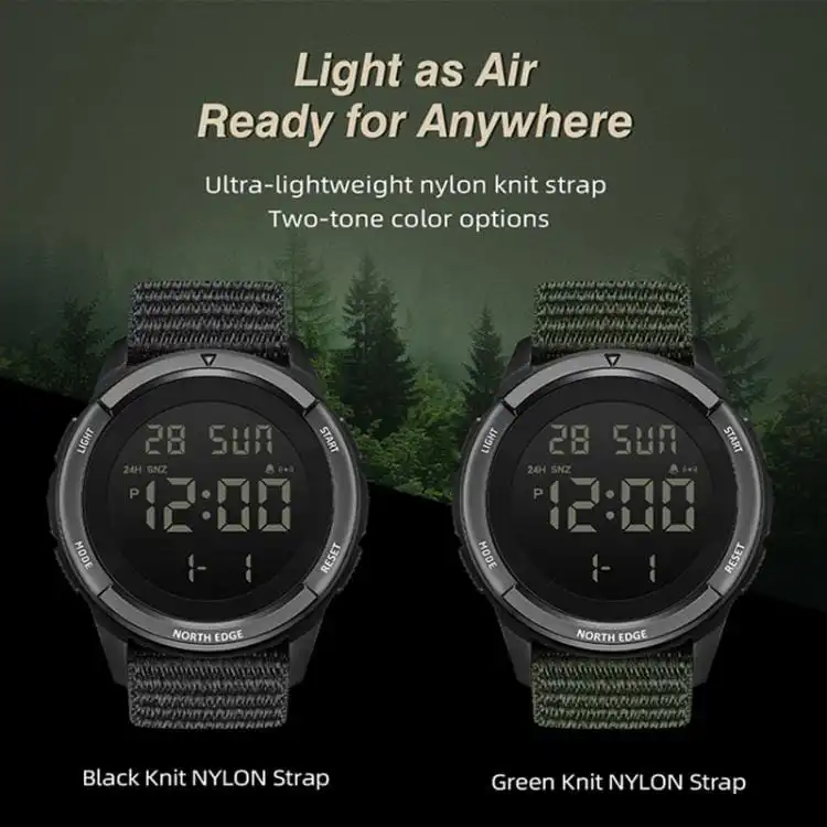- Ultra-Lightweight & Durable Construction: Weighing in at approximately 43g, the watch features a robust ABS Plastic case and a comfortable, breathable Knit Nylon Strap. It’s built tough without weighing you down.