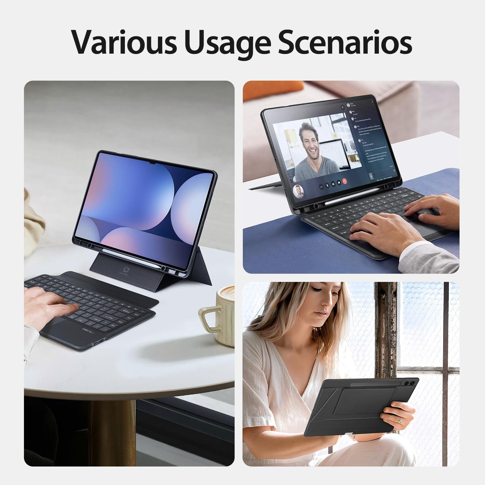 📐 Stable Multi-Angle Stand The case easily adjusts to provide the perfect viewing angle for any task—whether you are typing at a desk, participating in a video conference, or watching a movie.