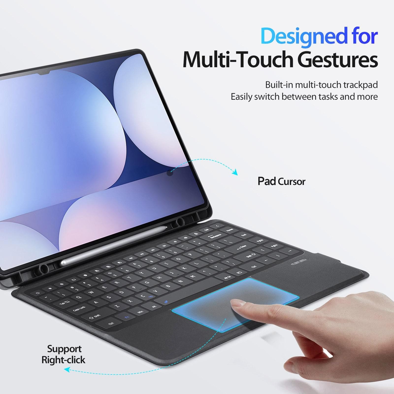 Smart Touchpad Integration The built-in high-precision touchpad supports multi-touch gestures, allowing you to navigate the tablet interface, switch apps, and edit documents with the same efficiency as a traditional PC.