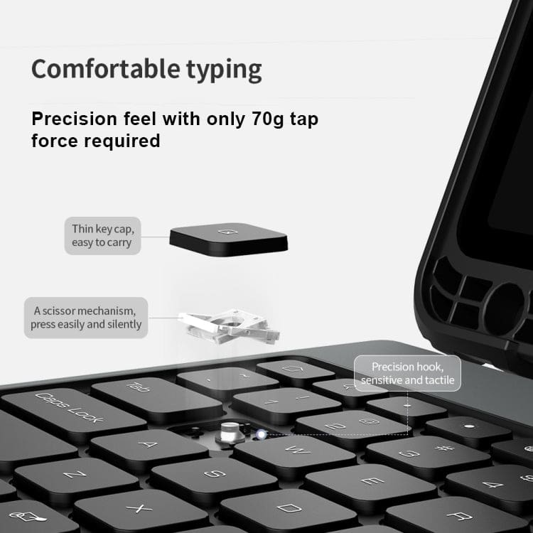 Light Up Your Workspace The integrated keyboard features a stylish backlight, allowing you to type comfortably even in low-light environments. Choose between modes to suit your mood or battery needs.