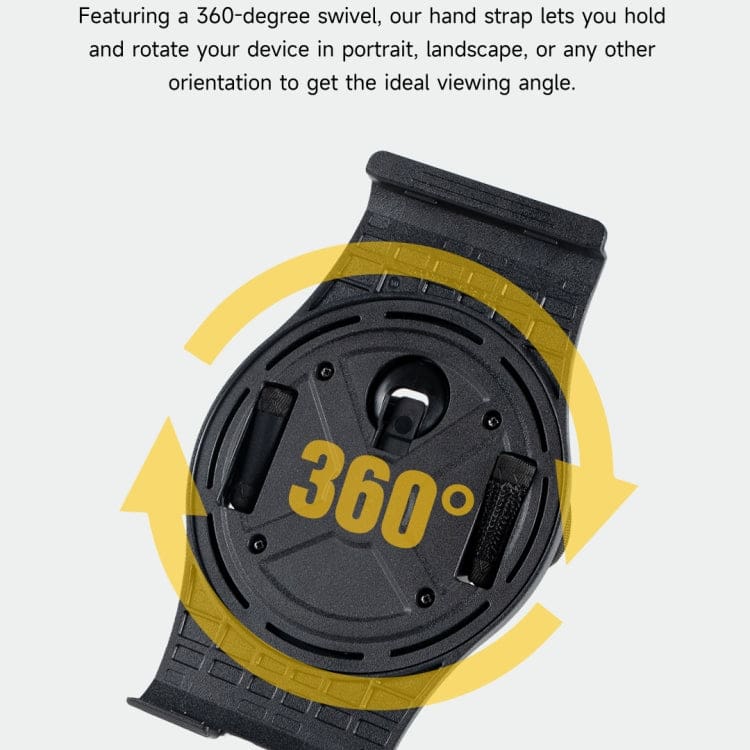 This rotating hand grip and stand attached to Ulefone Armor Pad 2 rugged tablets to provide a comfortable, adjustable grip for long term usage