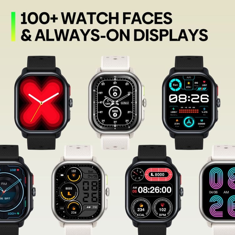 - Over 100 different watch face choices (downloadable via app)