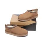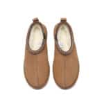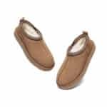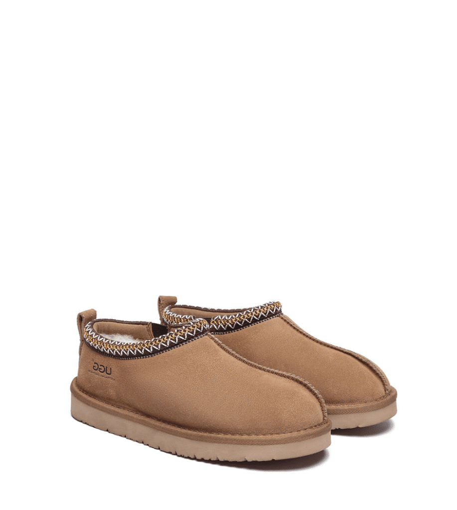 For the perfect blend of comfort and style, meet the Tazzy UGG Slippers Valen by Australian Shepherd. These versatile mini boots feature a high-quality cow suede upper and a luxuriously soft sheepskin wool lining to keep your feet warm and cosy all day long. Designed for both indoor and outdoor wear, the water-resistant finish and exotic knitted collar detail add both functionality and flair. With a lightweight, durable rubber and EVA sole, these slippers offer all-day support in a timeless silhouette that works for everyone.
