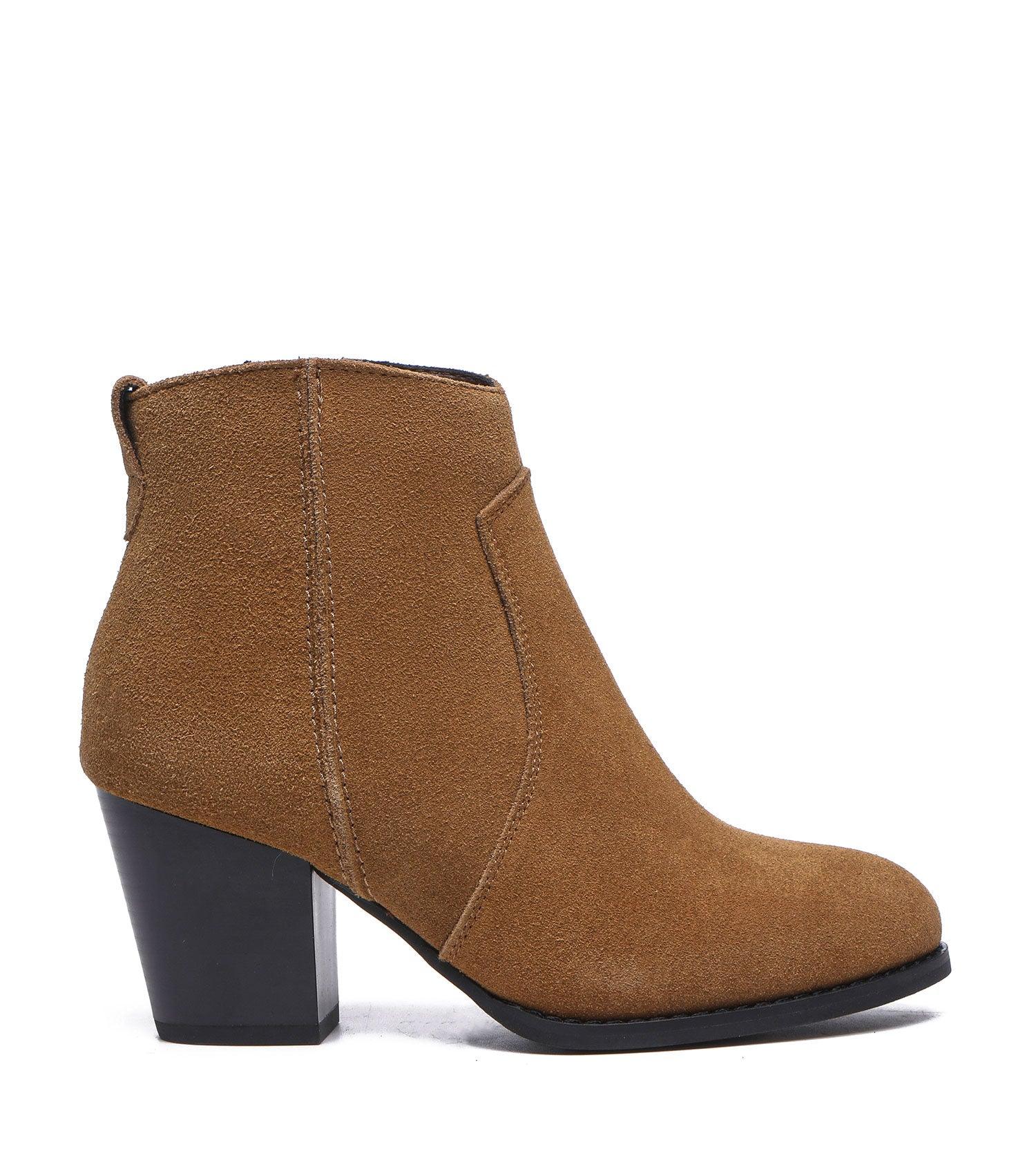 Velora Zipper Leather Ankle Heel Boots