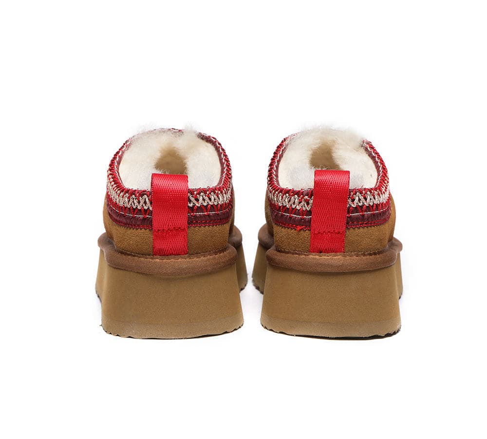 The Tassy Mini Platform UGG Boots are the must-have shoe of the season! This fresh take on a classic favourite features a chunky 4cm platform sole and a playful red and white cross-stitch trim for an added twist of personality. Crafted with a cow suede upper and plush sheepskin wool insole, these boots provide the perfect balance of warmth, comfort, and unique style. Whether you’re dressing up your denim or looking for an everyday winter essential, the Tassy Mini is here to add fun and flair to your wardrobe.