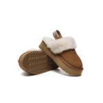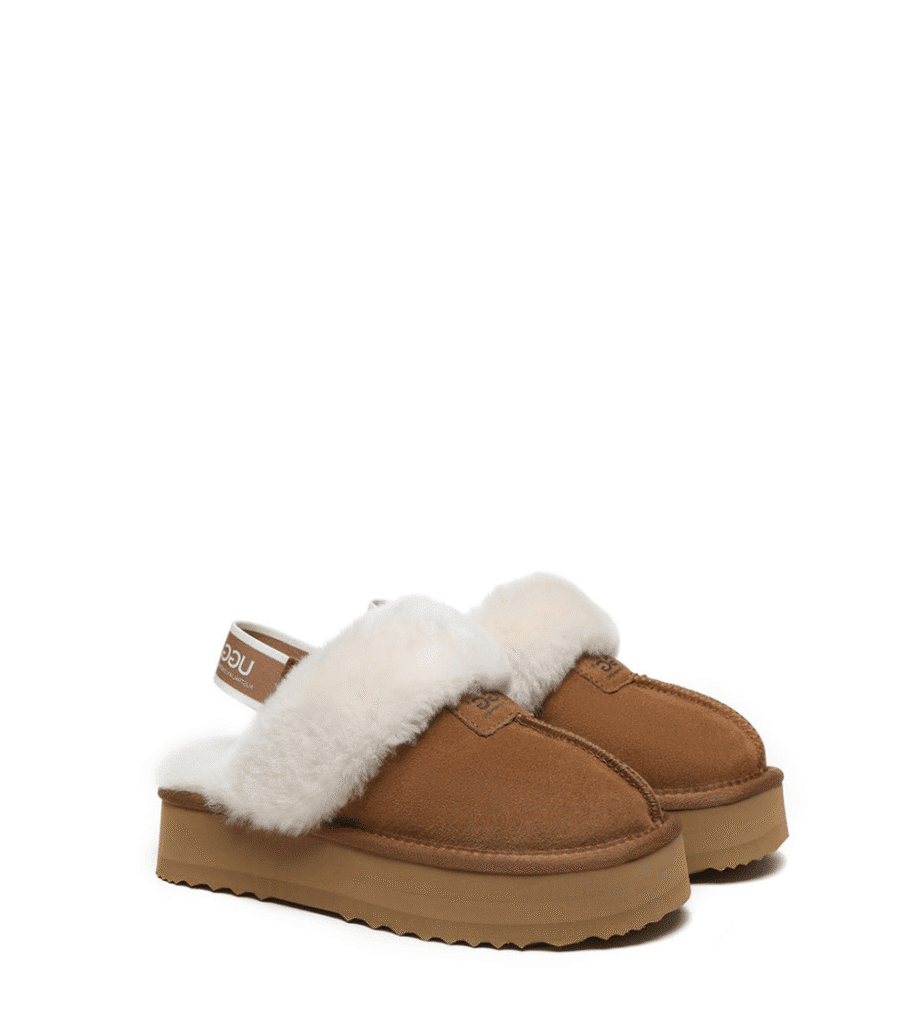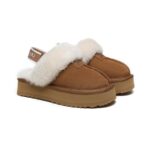 Featuring a unique waffle-textured platform, these slippers provide enhanced cushioning and an elevated aesthetic. Crafted from 100% genuine sheepskin wool with a plush fleece lining, they envelop your feet in warmth and support. Slip into relaxation and style, one step at a time.